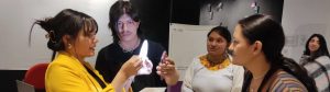 “artesanales” y materiales no tradicionales, estas herramientas le permiten transitar entre el arte y el activismo como un proyecto político de vida. Explora las maneras de aprender-enseñar: lo sonoro, la imagen y su representación, en contextos culturales específicos y en la educación artística, con la finalidad de crear puentes epistémicos colaborativos en la educación artística, popular y comunitaria.